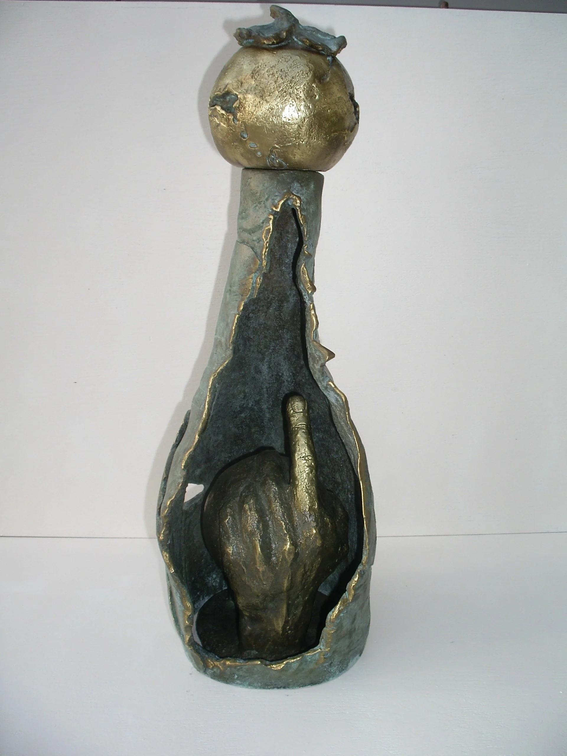 Zum Wettbewerb Garcinia Mangostana im Februar 2009 vom Kunst Forum International (KFI) waren Künstler aus Deutschland, Österreich und der Schweiz sowie Mitglieder vom KFI eingeladen. Das Erste, was ich mich gefragt habe, war: Was ist das? Ich habe dann im Internet gesucht und die Eigenschaften, Kraft und Geheimnisse dieser Frucht entdeckt. Zwei Monate Zeit verblieben um meinen Fantasien freien Lauf zu lassen und so "meine" Mangostana Skulptur zu realisieren. Nach längerer, intensiver Arbeit hielt ich am Schluss die Goldene Hand mit der heilenden Kraft dieser Frucht Mangostana fest und habe sie stark verinnerlicht. Die Skulptur symbolisierte meine greifende Hand, welche diese Frucht für immer behalten will. Bei der Nominierung am 21. Februar 2009 hat diese Skulptur ein sehr gutes Echo bekommen und erreichte den 3. Rang unter den 86 Teilnehmern. Die „Mangostanomanie“ hat mich nicht mehr losgelassen, und so sind die weiteren Skulpturen (wie Neda, Message on the bottle 1 und 2) entstanden.